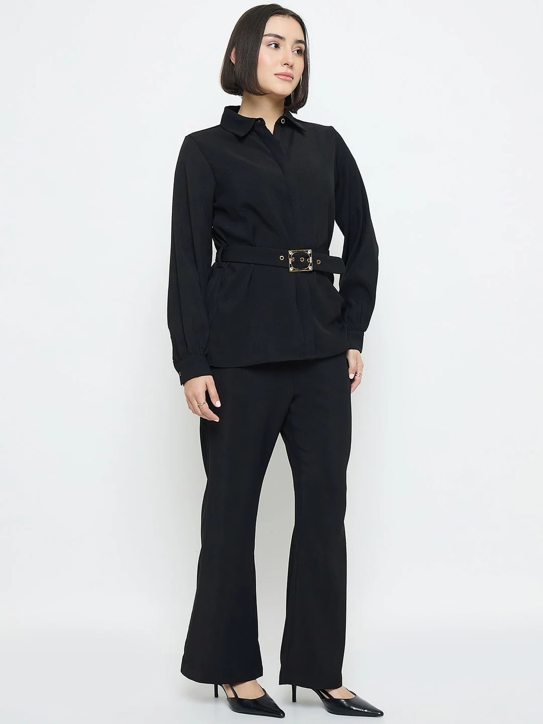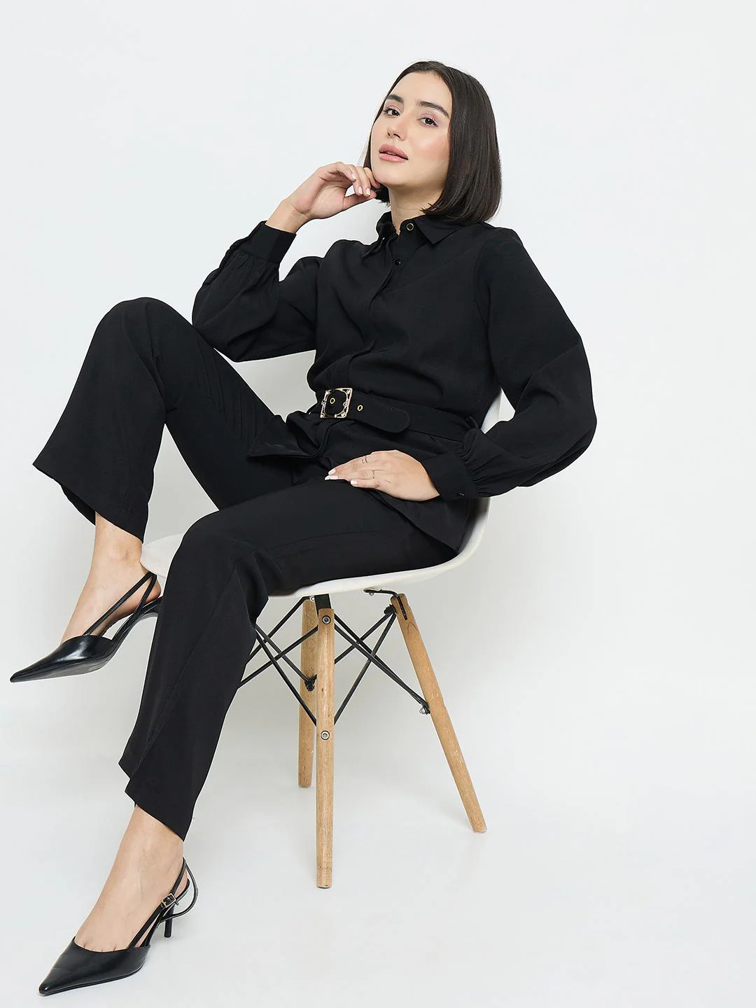 Be the first to review “Solid Belted Black Shirt” Cancel reply