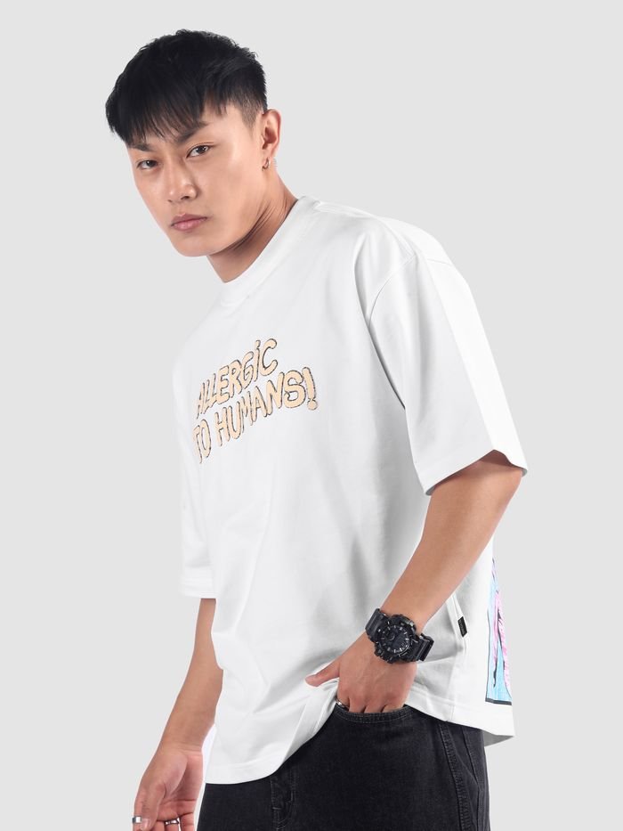 The Allergic To Human Puff Printed Oversized T-Shirt brings a bold, statement-making design with its unique mix media print. Featuring a ribbed round neck for added comfort, this oversized tee offers an effortlessly relaxed fit. Pair it with slim-fit jeans or joggers for a modern, casual vibe that exudes confidence and individuality in every step.
