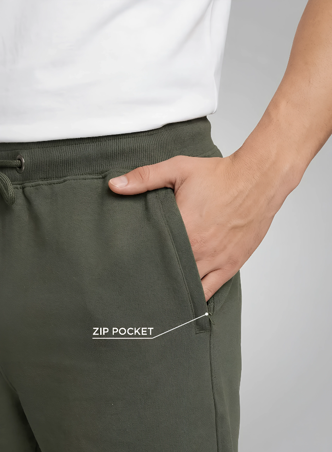 Olive Green Zip Pocket ShortsOlive Green Zip Pocket Shorts