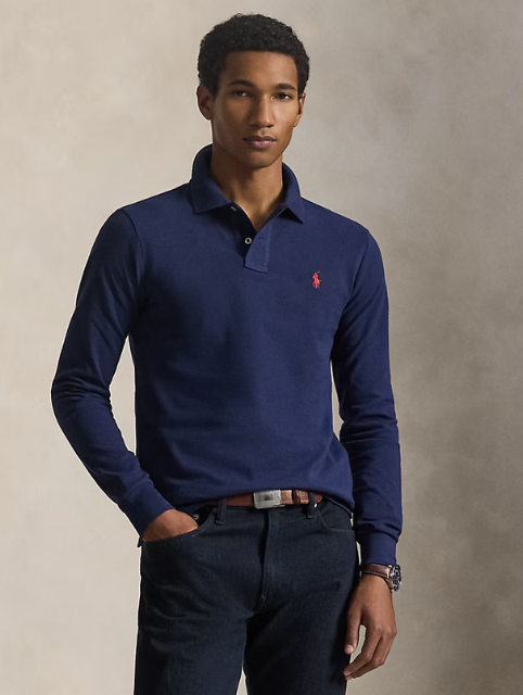 Slim Fit Mesh Long-Sleeve Polo