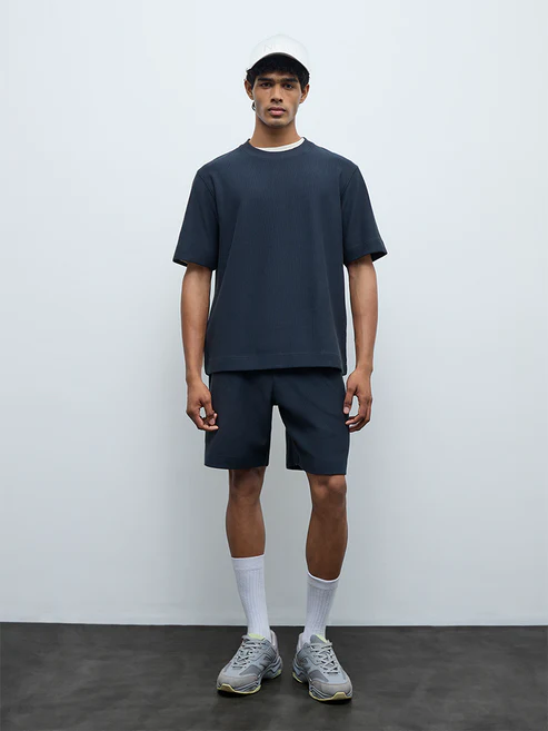 Ideal for laid back days, these teal shorts from Nuoflexx are shaped in a relaxed fit that prioritises comfort. Made from a ribbed cotton blend, they feature a mid rise waist with an elasticated waistband and adjustable drawstring for a flexible fit. Completed with functional pockets, they suit casual routines and easy off duty wear.