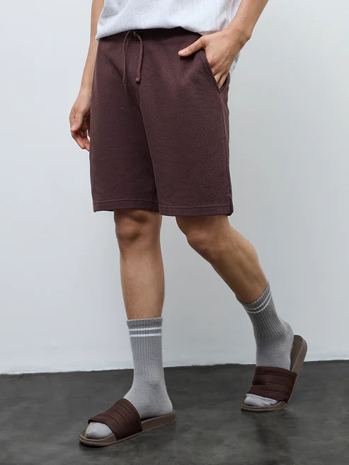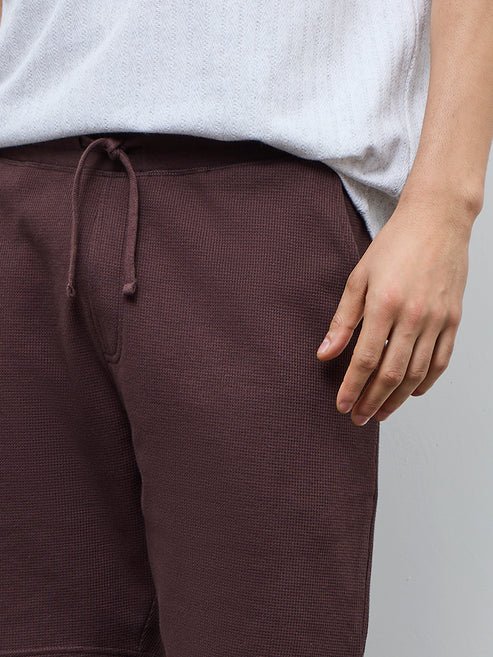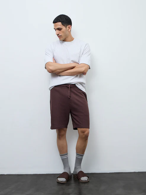 These dark brown shorts from WES Lounge are designed for relaxed days and off-duty comfort. Made from breathable fabric with a waffle-textured finish, they feature an elasticated waistband for an easy fit and side pockets for everyday essentials.