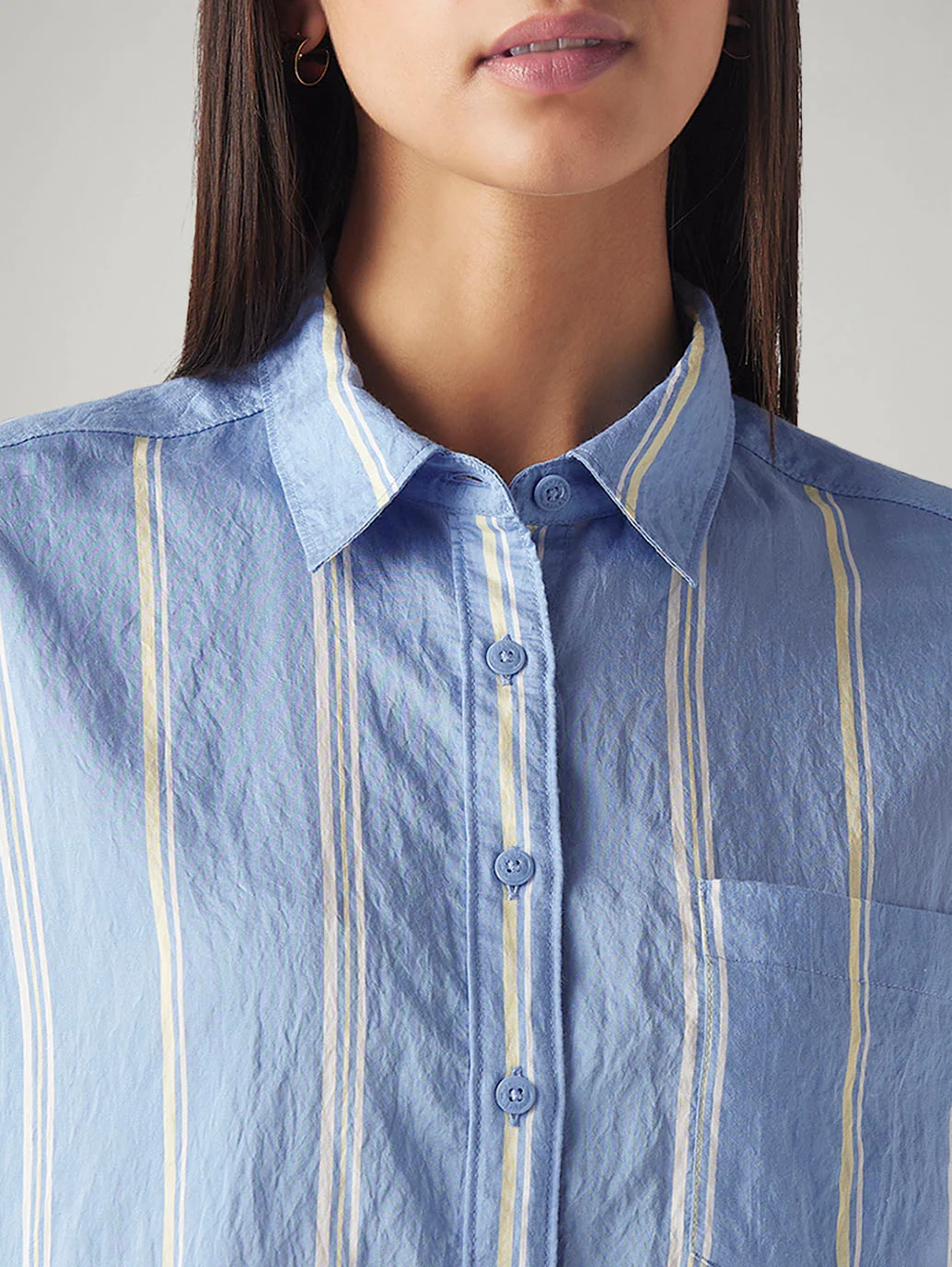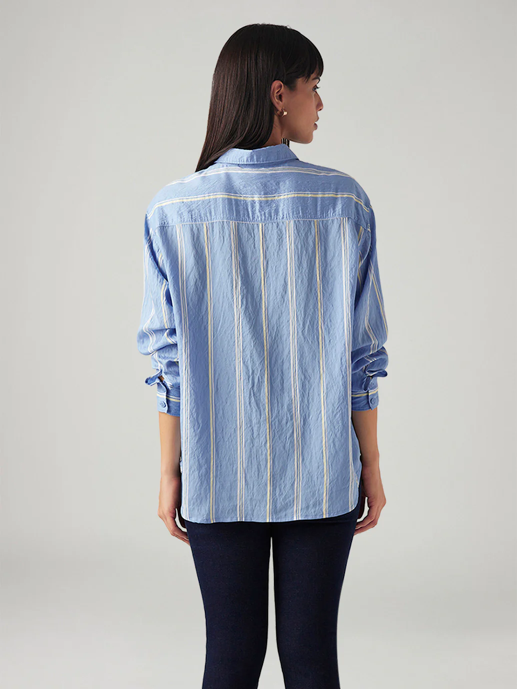 Make your outfit pop with this women’s shirt from Levi’s. Made from good quality nylon, rayon, this shirt features a striped pattern and comes in the color blue. It’s spread collar and full sleeves give a classic look.