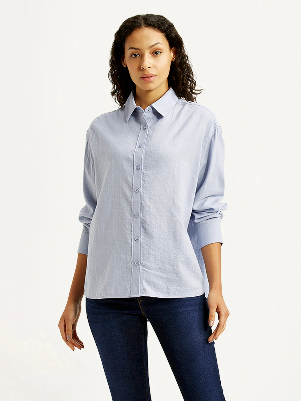 1. Features a spread collar and comfortable full sleeves.